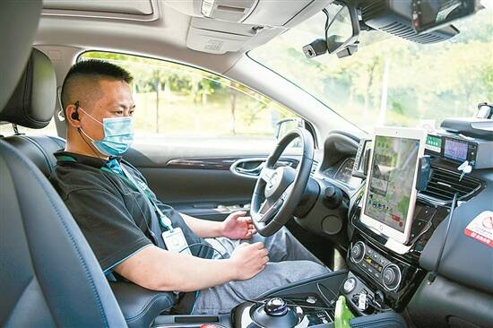 自动驾驶出租车内,安全员在驾驶座上 摄影/梁喻