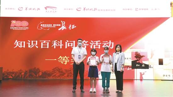 羊城晚报社教育健康部副主任,羊城晚报教育发展研究院执行院长陈晓璇和广州图书馆儿童与青少年部主任招建平为知识百科问答活动一等奖选手颁发证书