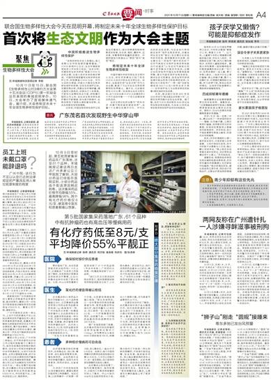 10月9日零时起,第五批国家集采药品在广东落地,涉及61个品种。羊城晚报记者这两日走访广州多家公立三甲医院了解到,大部分药品已经能在医院买到,小部分药品由于配送原因稍迟到粤。这次集采药品价格平均降幅55%、最高降幅98%,其中有化疗药价格仅8元/支,便宜得令医生和患者都难以想象。
