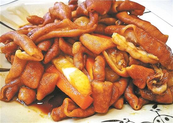 好味肉的做法很特别,不少年轻人都很爱吃,秘制酱汁有拔丝感觉,虽是一道咸味菜,但你会吃出浓浓的焦糖味,里面的厚切猪肉肥瘦均匀,一口下去你原以为会咬不开,怎知轻轻松松就能尝到鲜嫩多汁的靓猪肉。