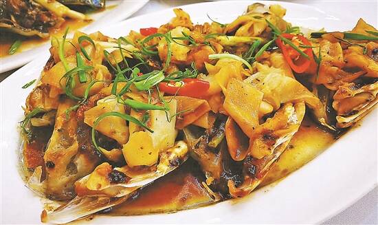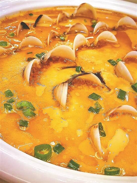 主食咸煎饼不少食客都会必点,店家的服务通常比较到位——见你桌上的菜已被“清扫”得七七八八,新鲜出炉、热辣辣的咸煎饼就会送上桌来。明明你已吃撑,放进嘴里一吃,不少人就会完全控制不住自己,吃完一件,然后再偷偷多夹一件……直至光盘为止。