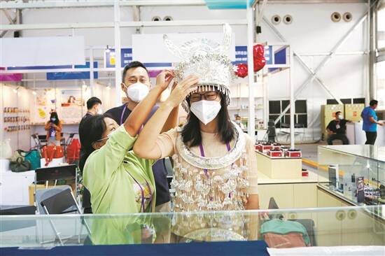本届广交会线下设立了“乡村振兴馆”,参展商展出的特色展品吸引了不少客商前来参观采购