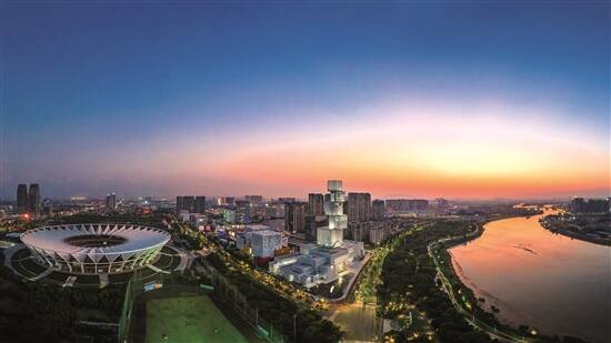 从空中俯瞰三龙湾高端创新集聚区顺德片区,佛山新城的夜晚灯光璀璨 王澍 摄