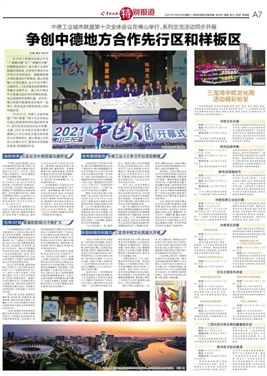 10月15日,中德工业城市联盟(下称“联盟”)第十次全体会议在佛山新城保利洲际酒店顺利举行,系列交流活动由此拉开序幕。当晚,2021年中欧文化周开幕式暨佛山人才之夜在古香古色的陈氏大宗祠前举行,佛山高端人才纷纷上台展示才艺,更有中外经典剧目表演,现场精彩纷呈。