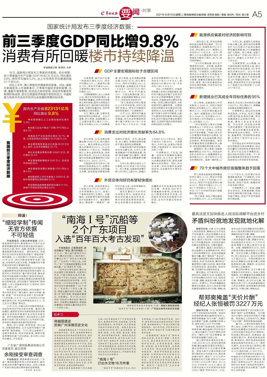 前三季度GDP同比增9.8% 消费有所回暖楼市持续降温