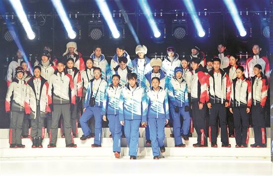 北京冬奥会和冬残奥会制服装备27日晚在首钢园区发布。发布仪式上,在被红色灯光点亮的工业遗址三高炉的映衬下,拥有霞光红、天霁蓝等冬奥色彩的冬奥制服格外亮眼。这些制服将是冬奥工作人员、技术官员和志愿者的专属身份标识,将在冬奥赛场形成一道流动的风景线。