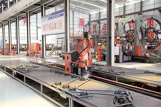这是项目在广东首次创建的小型预制构件自动化生产线,实现了24小时连续自动化生产,产能比原有传统生产方式提升5倍。流水线各功能区之间通过信息、通讯技术智能联接,再配合机械臂、传送带等机械介质,布料、成型、养护等操作环节一气呵成。