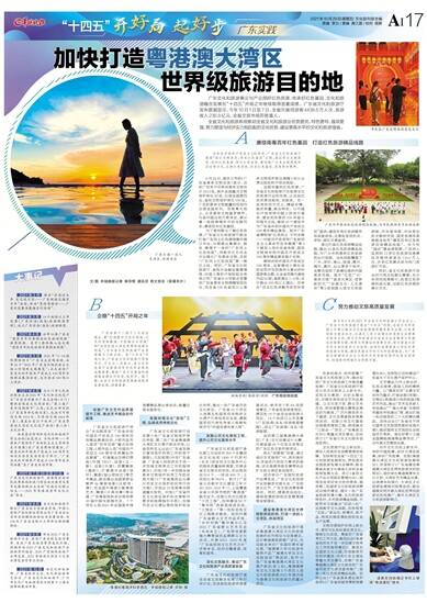 在今年2月的2021年全省文化和旅游工作会议上,广东省文化和旅游厅提出“十四五”时期,全省文化和旅游工作要以推动文化和旅游高质量发展为主题,以改革创新为根本动力,以满足人民日益增长的美好生活需要为根本目的,将文化和旅游业打造成为全省精神文明建设的重要支撑、物质文明建设的重要支柱,努力塑造与经济实力相匹配的文化优势,加快打造粤港澳大湾区世界级旅游目的地,建设更高水平的文化和旅游强省,为广东在全面建设社会主义现代化国家新征程中走在全国前列、创造新的辉煌作出积极贡献。
