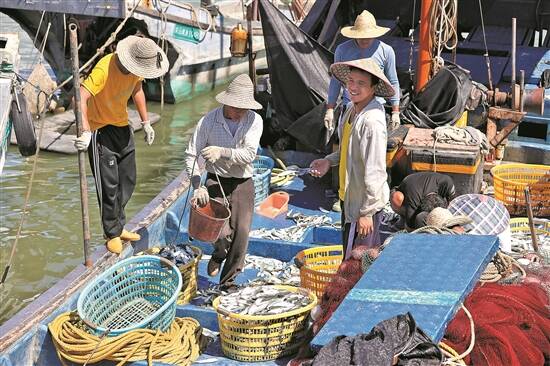 小漠渔港渔民捕鱼归来。小漠镇在深汕合作区西南部,片区临海而立,山环水绕,拥有20公里优质海岸线,浅海滩涂广阔,沙粒细小均匀,海水碧绿淸澈,海洋资源丰富。鲘门海鲜久负盛名,有人称之为“海鲜之都”,却少有人知小漠海鲜也同样“生猛”