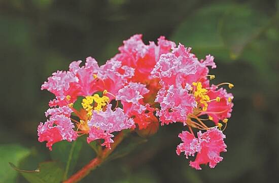 有趣的是,宋代梅尧臣在诗中特别提到紫薇的一种特性:“禁中五月紫薇树,阁后近闻都著花。薄薄嫩肤搔鸟爪,离离碎剪晨曦霞。”这是说紫薇有怕痒的习性,若用指甲搔弄紫薇的树身,树枝就会轻颤起来。所以,紫薇还有一种俗称叫“痒痒树”。