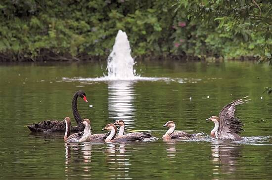 最近,常来珠江公园散步的游客发现,快绿湖上来了一群“新朋友”:黑天鹅与鸿雁。它们时常结伴出游,在水面追逐、嬉戏,成为一道靓丽的风景线。原来,今年9月,珠江公园分批引进四只黑天鹅、六只鸿雁,增强公园的观赏性。