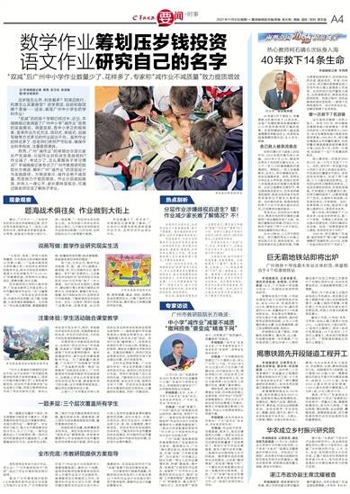 羊城晚报:北京、上海、广州等9个城市是“双减”试点,与其他城市相比,广州的“减作业”有何特点?