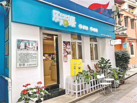 沿着繁华热闹的北京路步行街往万福路方向走,在一条斜巷的路口,有两家颇具文艺气息的小店。一家主营花艺,另外一家则售卖时下年轻人喜爱的饮品与蛋糕。店铺小而精巧,店内的员工认真而有序地接待着附近的街坊来客。