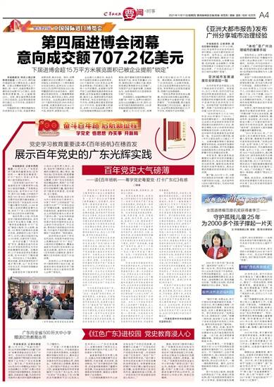 羊城晚报讯 记者丰西西报道:11月10日,广东党史学习教育的重要读本《百年扬帆——粤学党史粤爱党·打卡广东红》(简称《百年扬帆》)新书首发式举行。