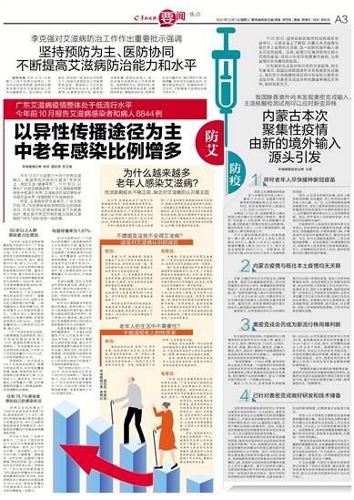 近几年,我国各地关于“老年人艾滋病病例增多”的新闻报道时有所见。据广东省卫健委2020年发布的艾滋病疫情分析数据显示:广东新报告的高年龄组(≥60岁组)病例所占比例从2015年的12.4%增加到了2020年1至10月的18.9%,年龄最大的病例已经90多岁。