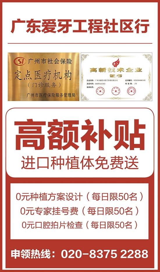 博硕学位专家种植节现隆重开幕,30多位国内外口腔专家联合坐诊,博士、硕士,主任医师、副主任医师限量预约,1000颗种植体免费送。全口无牙、半口无牙、多颗缺牙、单颗缺牙,或长期吃饭不香、被牙病缠身的缺牙患者,即日起都可拨打官方热线020-8375 2288报名申领。