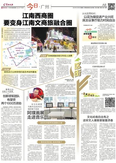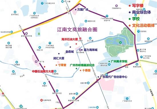 江南中街道办事处主任卢佳亮告诉记者,江南文商旅融合圈目前主要以江南西商圈为主,该商圈主要为餐饮业,业态较单一,《打造计划》将把更多元素融入。“一方面是通过政府的引导,整体提升商业环境;另一方面江南文商旅融合圈内有十香园、广州美术学院等文化资源,以及晓港公园、海珠涌等生态资源,下一步将把文化元素、旅游元素融入商圈当中,比如对广州美术学院进行外立面的提升,打造海珠新活力文商旅融合圈核心区和样板项目。”