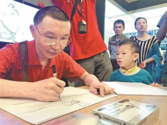 阿璞曾是广州市少年宫首位特殊学员、首位智力残疾教师。“阿璞在少年宫做助教的时候,我们的孩子是他的学生。”在展览上,家长们纷纷向阿璞的父母问好。