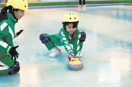 除了在体育课全面普及基础滑行外,番禺执信中学将滑冰纳入了课后托管的素质拓展课程。本学期近70名学生报读了滑冰第二课堂,小学部五年级的张慕瑶就是其中一位,她在当天的滑冰第二课堂上体验了冰壶。张慕瑶在冰上学习了8节课,对自己的滑冰技术颇有信心:“应该滑得挺快了。以后要是没有别的兴趣爱好,那我就专门学滑冰。”