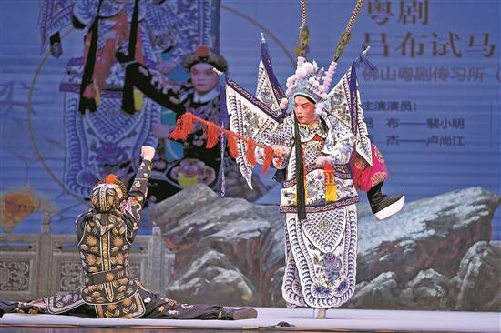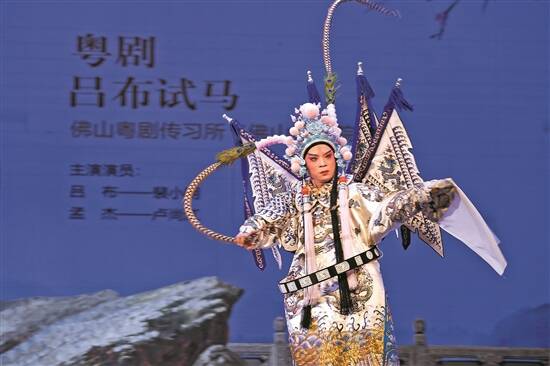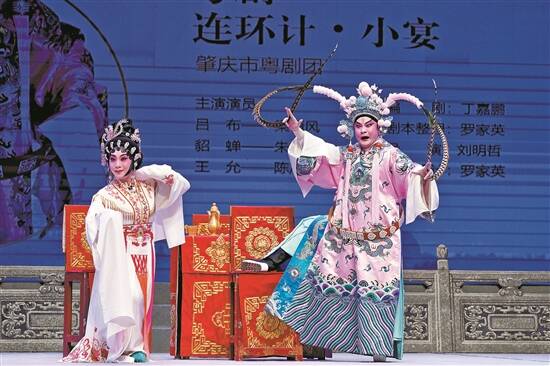 肇庆市粤剧团有限公司则另辟蹊径。领队陈启良表示,剧团改编了昆曲《连环计·小宴》,重新编配音乐后编排剧目。陈启良透露,饰演吕布的梁恒风今年3月就开始做准备:“梁老师专门到北京学习翎子功。翎子功需要一直甩动头部的翎发,让其立起来,这是整套戏里最难的。”