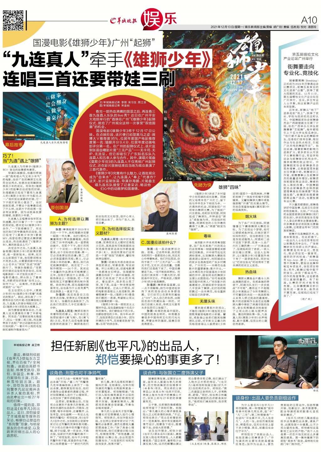 “九连真人”牵手《雄狮少年》 连唱三首还要带娃三刷