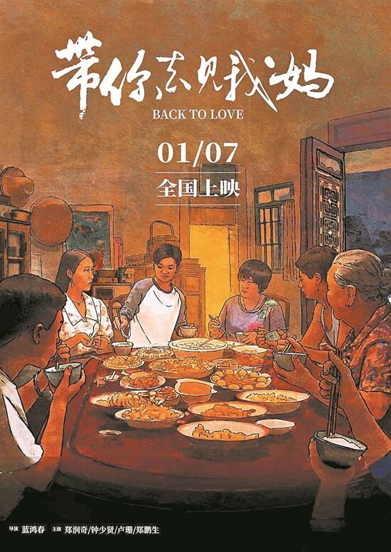 潮汕方言贺岁片《带你去见我妈》近日宣布定档2022年1月7日,同时发布“回家围炉”版定档海报与预告。本片讲述了一个潮汕妈妈从反对儿子的恋情到为爱改变自己的故事,刻画出潮汕母亲的执念与柔软,诠释了一份跨越偏见和传统的母爱。