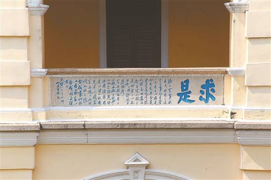 求是碑在孙中山大元帅府纪念馆北楼三楼南侧正中的栏杆上
