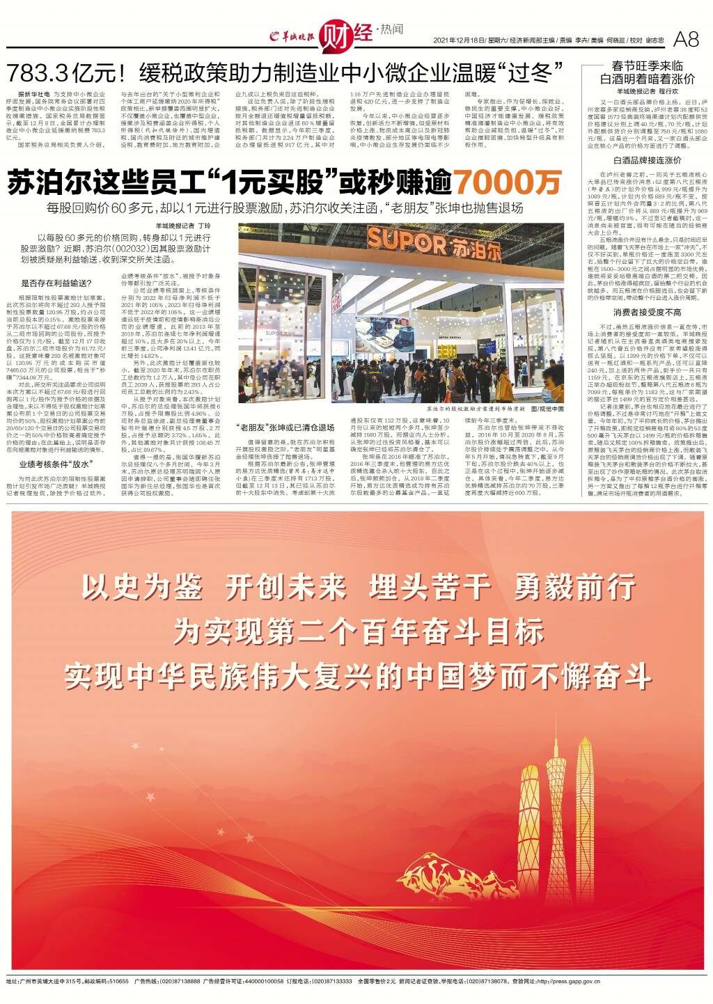 苏泊尔这些员工“1元买股”或秒赚逾7000万