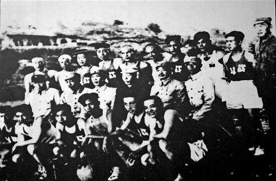 贺龙、续范亭、周士第等领导与东进干部篮球队、120师“战斗篮球队”的队员和教练合影 晋绥边区革命纪念馆供图
