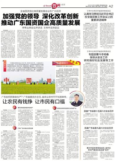 羊城晚报讯 12月30日,全省国资国企高质量发展会议在广州召开。会议的主要任务是,坚持以习近平新时代中国特色社会主义思想为指导,深入学习贯彻习近平总书记关于国资国企的重要论述和对广东系列重要讲话、重要指示批示精神,对新发展阶段我省国资国企高质量发展进行深入部署、推动落实。省委书记李希出席会议并讲话,省委副书记、代省长、深圳市委书记王伟中主持会议。