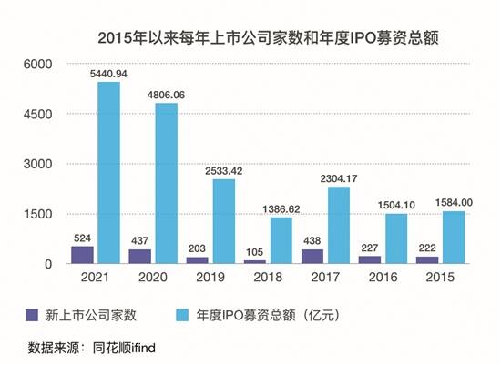 随着汇通集团2021年12月31日在上交所挂牌,2021年A股IPO完美收官。在推进全面注册制的大背景下,2021年A股市场IPO表现火热,IPO企业数量和募资总额均已刷新历史纪录。数据显示,截至2021年12月31日,全年A股上市新股数量合计达524家,其中核准制下上市企业合计122家(沪市主板88家、深市主板34家),科创板、创业板上市企业分别为162家和199家,北交所上市企业41家。整体来看,2021年524家上市公司合计募资金额超过5400亿元,2021年IPO企业数量和募资金额分别同比增长了20%、13.21%。