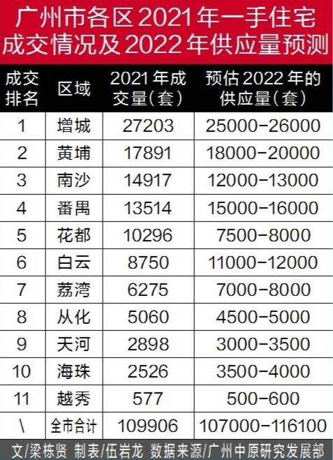 虽然经历了疫情、调控等情况,但2021年的广州楼市在稳定的总体氛围中完美收官,广州中原地产研究发展部及克而瑞统计的数据均显示,2021年全年广州市的一手住宅成交套数约在11万套左右。进入2022年,广州的一手住宅仍维持在高位,预计将推出11万套左右的一手住宅。