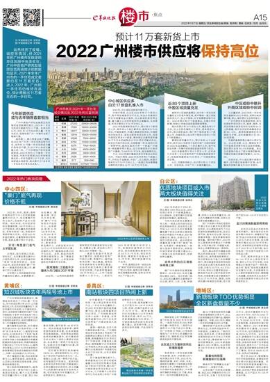 广州中原监控的数据显示,黄埔区去年成交了17891套一手住宅,而今年该区预计有1.8万-2万套新住宅上市,在充足的货量供应下,该区有望在今年实现1.8万套的成交。其中,去年新货不算多的中新广州知识城板块(下简称“知识城板块”)有七个住宅项目推出新货,其中还不乏首次亮相的全新项目,将成为黄埔2022年一手货量最充足的板块。
