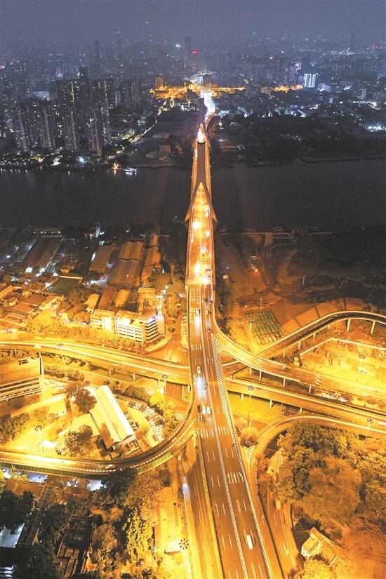 羊城晚报讯 记者严艺文、梁怿韬、王隽杰报道:历经150天紧张有序的全封闭施工,广州鹤洞大桥大中修工程桥面部分主体工程顺利完工,焕然一新的鹤洞大桥于1月10日0时正式恢复通车,车龙璀璨,宛若星河。