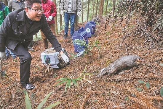 野生动物专家和救护团队放归穿山甲“乐乐”