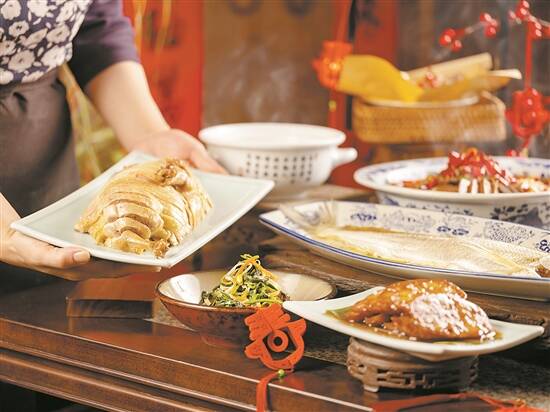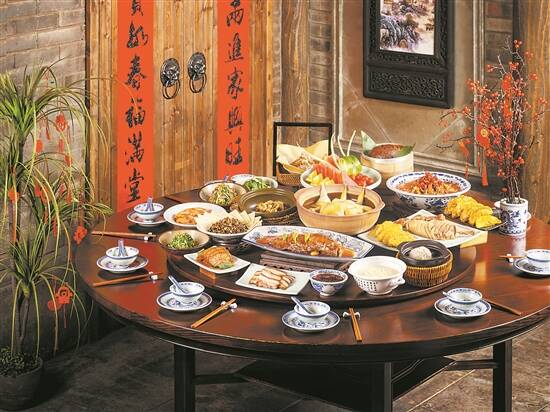 这些菜式在南京大排档的年夜饭菜单都能找到,为了满足不同人数、不同价位的年夜饭需求,店家有多款套餐可供选择。暖冬炖老鸡汤是特别根据广东人的饮食习惯而安排的,清炖狮子头、年糕葱香大闸蟹等则体现了江南菜在烹制上的特色,其他海中珍品如海参、海虾也尽收罗其中。最后,以精巧闻名的金陵小吃,烤鸭包或是古法糖芋苗收尾,为这一顿年夜饭画上圆满句号。