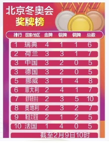 北京冬奥会奖牌榜
