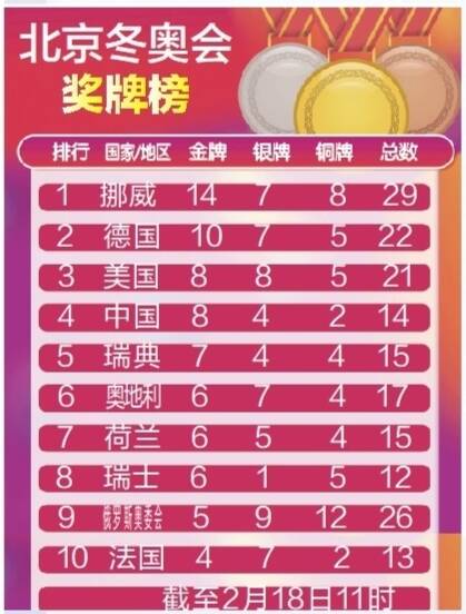 北京冬奥会奖牌榜