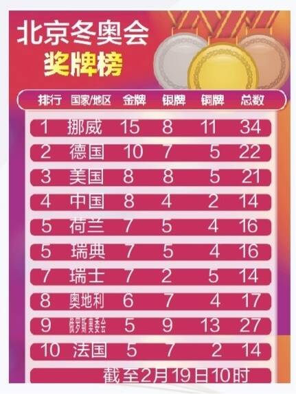 北京冬奥会奖牌榜