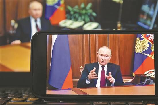 21日,普京发表电视讲话的画面 新华社发