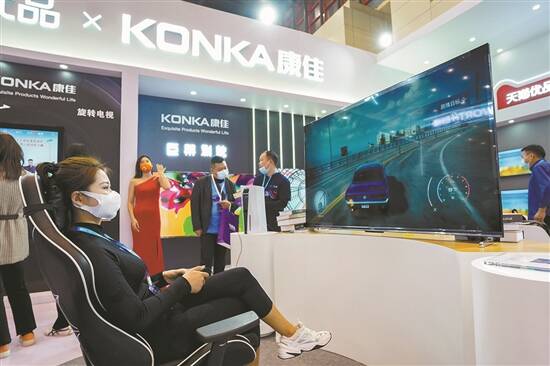 顾客在体验康佳大屏幕电视的游戏功能 视觉中国供图