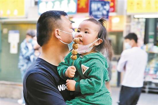 热辣滚烫的牛杂鲜香味扑鼻、凉拌鱼皮的芝麻油香味飘散、调制茶饮的冰块碰撞声响亮……从北京路步行街转入惠福美食花街,具有地方特色的小吃和餐馆在街道两旁林立,男女老少、一家大小在惠福美食花街闲逛,手里拿着小吃,手中捧着手机拍照“打卡”,广州市民的惬意生活场景成为美食街一道具有市井气息的风景线。