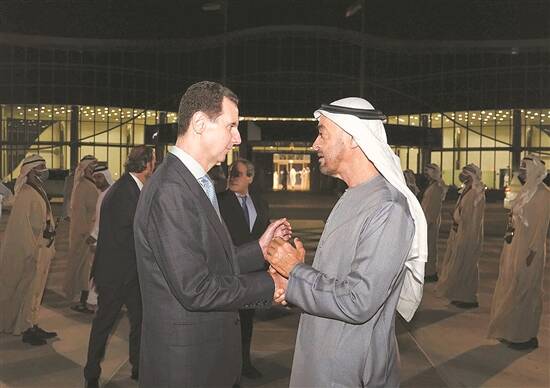 据阿联酋通讯社报道,阿联酋阿布扎比王储穆罕默德·本·扎耶德·阿勒纳哈扬与巴沙尔会晤时强调,叙利亚是“阿拉伯(世界)安全的基本支柱”,阿联酋渴望加强与叙利亚的合作。