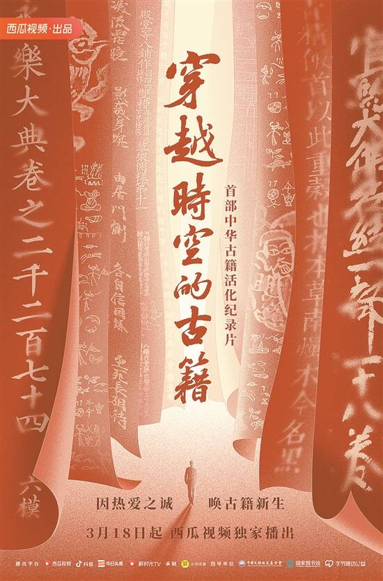3月18日,首部中华古籍活化纪录片《穿越时空的古籍》在西瓜视频上线。该片讲述了学者和艺术家修复古籍、演绎古籍内容,让古书“鲜活起来”的故事。