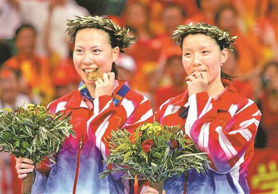 张洁雯(左)和杨维在雅典奥运会夺金 图/视觉中国