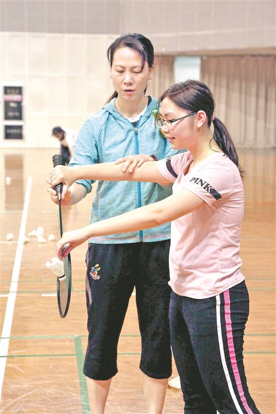 中山大学广州大学城校园体育馆,活力四射。“击球点有点低”“发力点不对,要往上打”“你先发过网再说”……羽毛球场上,张洁雯手握球拍巡场,大声指导学生动作。遇到不规范的动作,她就走过去,手把手地纠正学生的姿势、示范标准动作。指导完一个,再接着另一个。