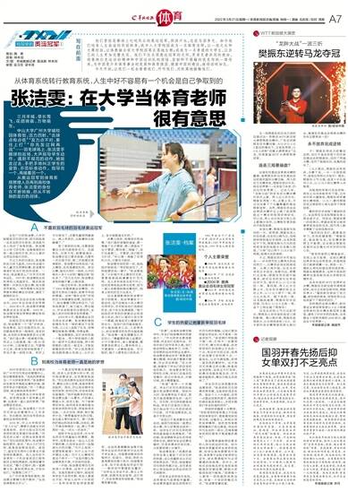 从奥运冠军到体育系统管理人员再到高校体育老师,张洁雯的身份在不断转换,但从不转换的是白色羽球。