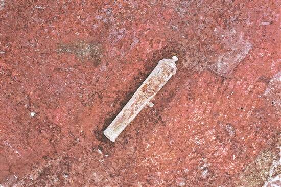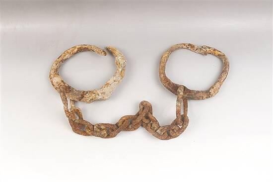 羊城晚报记者看到,部分出土遗物已在现场展示出来,除铁镣外,还有铁炮、子弹壳、玻璃试剂瓶等。“像这副脚镣只有40厘米长,上面没有锁孔,这说明反动派给当时的共产党人戴上就不打算解下来。”易西兵介绍。