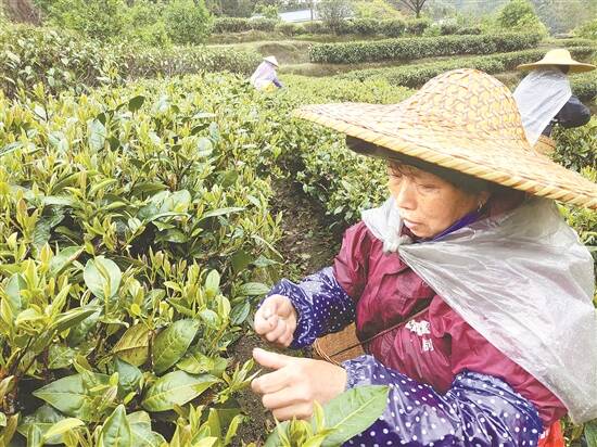 韶关仁化红山镇农民采摘茶叶 张浵 摄