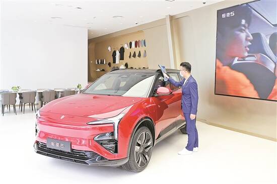 记者近日探访发现,该体验中心拥有车辆展示区、客户休息区、车辆选配展示区、互动体验区等,分为上下两层。在车辆展示区,一台红色的恒驰5展车吸引了不少消费者前来体验。